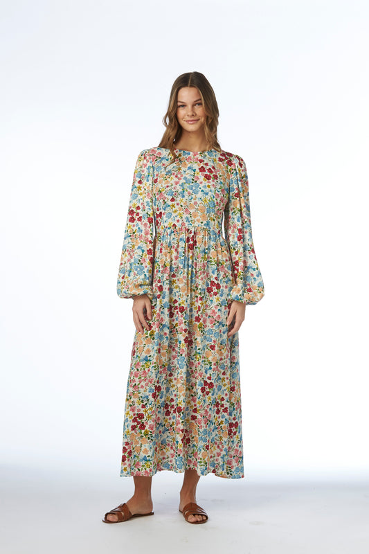 Joy Long Dress - Green flowerprint